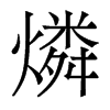 燐【巳集中】【火部】 康熙筆画:16画,部外筆画:12画