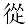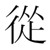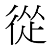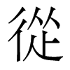 《廣韻》疾容切《集韻》《韻會》《正韻》牆容切,?俗平聲。《說文》本作从。相聽也。《書·益稷》汝無面從。《說命》后從諫則聖。