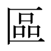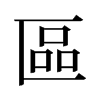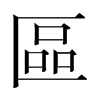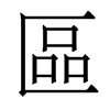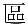 《唐韻》豈俱切《集韻》《韻會》虧于切《正韻》丘于切,?音驅。《說文》藏隱也。从品在匸中。品,衆也。《徐曰》凡言區者,皆有所藏也。《荀子·大略篇》言之信者,在乎區蓋之閒。《註》區,藏物處。