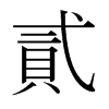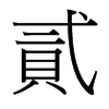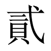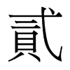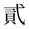 《唐韻》《集韻》《韻會》《正韻》?而至切,音樲。《說文》副益也。《書·周官》貳公弘化。《傳》副貳三公。《周禮·天官·小宰》掌邦之六典、八灋、八則之貳。《註》貳,副也。《禮·少儀》乗貳車則式。《註》貳車,副車。