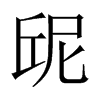 《廣韻》《集韻》?奴低切,音泥。《爾雅·釋丘》水潦所止,屔丘。亦作泥。《郭註》反頂受水。
