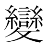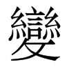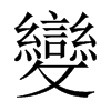〔古文〕???《唐韻》祕戀切《廣韻》彼眷切。《集韻》《韻會》彼卷切,?鞭去聲。《說文》更也。《小爾雅》易也。《廣韻》化也,通也。《增韻》轉也。《正韻》攺也。《易·乾卦》乾道變化。《易解》自有而無謂之變,自無而有謂之化。《禮·王制》一成而不可變。《註》更也。《周禮·夏官·司爟》四時變國火,以救時疾。《註》變,猶易也。《前漢·循吏傳》漢家承敝通變。