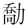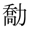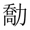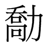 勪【子集下】【力部】 康熙筆画:14画,部外筆画:12画