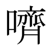 〔古文〕?《唐韻》在詣切《集韻》《韻會》《正韻》才詣切,?音劑。《說文》嘗也。《書·顧命》太保受同祭嚌。《傳》太保旣拜而祭,旣祭受福,嚌至齒,則王亦至齒。《禮·雜記》小祥之祭,主人之酢也,嚌之。
