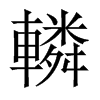 《廣韻》力珍切《集韻》《韻會》《正韻》離珍切,?音鄰。《說文》車聲。《楚辭·九歌》乗龍兮轔轔。