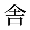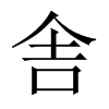 《廣韻》始夜切《集韻》《韻會》《正韻》式夜切,?音赦。《說文》市居曰舍。《釋名》舍,於中舍息也。《禮·曲禮》將適舍,求毋固。《註》謂行而就人館。《疏》適,猶往也。舍,主人家也。《周禮·天官·宮正》以時此宮中之官府,次舍之衆寡。《註》次謂吏直宿,若今部署諸廬者。舍,其所居寺。《前漢·高祖紀》高祖適從旁舍來。