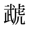 虣【申集中】【虍部】 康熙筆画:15画,部外筆画:9画