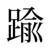 《集韻》《韻會》?容朱切,音兪。《說文》越也。《博雅》遠也,渡也。《易·謙卦》?而不可踰。《書·費誓》無敢?攘踰垣牆。《禮·曲禮》禮不踰節。《左傳·隱元年》士踰月外姻至。《註》踰月,度月也。