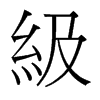 又《玉篇》階級也。《廣韻》等級。俗作?。《禮·曲禮》拾級聚足。《註》級,等也。