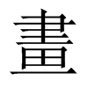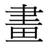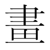 又《廣韻》《集韻》《韻會》《正韻》?胡卦切,音話。《爾雅·釋言》畫形也。《註》畫者爲形像。《釋名》畫,挂也。以五色挂物象也。俗作?。《周禮·天官·典絲》凡祭祀共黼畫組就之物。《疏》凡祭服皆畫衣繡裳。《儀禮·鄕射禮》大夫布侯,畫以虎豹。士布侯,畫以鹿豕。