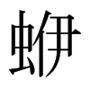 《唐韻》於脂切,音咿。蛜蝛。《說文》作蛜委,鼠婦也。通作伊。《詩·豳風》伊威在室。《韓愈詩》破竈蛜蝛盈。