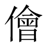 儈【子集中】【人部】 康熙筆画:15画,部外筆画:13画