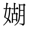 媩字的拼音:hu阳平