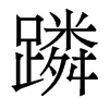 《唐韻》《集韻》《韻會》《正韻》?良刃切,音吝。《說文》轢也。《類篇》行貌。或作躙。