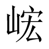 《集韻》乎萌切,音閎。與嶸?同。崝嶸也。《說文》本作嶸,或作峵?。《王延壽·魯靈光殿賦》鬱坱圠以嶒峵。《註》嶒峵,上潤而險也。《正字通》字彙汎云山也,分嶸峵爲二,誤。
