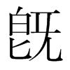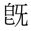 又許旣切,音欷。餼或作旣。饋客芻米也。《禮·中庸》旣廩稱事。《註》旣讀爲餼。餼廩,稍食也。《正字通》俗旣字。旣字中匕作丨二。