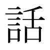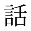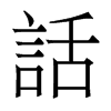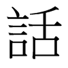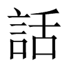 〔古文〕?《玉篇》胡卦切《正韻》胡挂切,?音畫。《說文》合會善言也。《爾雅·釋詁》言也。《疏》孫炎曰:善人之言也。《廣韻》語話也。《書·盤庚》乃話民之弗率,誕吿用亶。《註》吿也,言也。《詩·大雅》愼爾出話。《傳》善言也。《左傳·文六年》著之話言。《註》爲作善言遺戒。