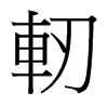 《廣韻》《集韻》《韻會》《正韻》?而振切,音刃。《說文》礙車也。《徐曰》止輪之轉,其物名軔。
