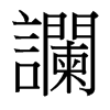 又《廣韻》《集韻》《韻會》?郞旰切,蘭去聲。義?同。《說文》或作譋。《集韻》或作㘓、諫。