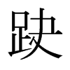 《唐韻》《集韻》《韻會》?古穴切,音抉。《說文》馬行貌。《玉篇》疾也。《戰國策》揬前趹後。《史記·張儀傳註》謂馬前足揬向前,後足趹於後。趹,謂後足抉地,言馬之走勢疾也。《後漢·班固傳》要趹追蹤。《註》趹,奔也。