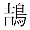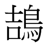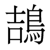 《廣韻》古黠切《集韻》訖黠切,?音戛。《玉篇》鴶鵴,布穀鳥也。《爾雅·釋鳥》鳲鳩,鴶鵴。《疏》布穀類也。一名擊穀。一名桑鳩。