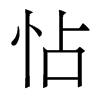 又《集韻》處占切,音沾。怗滯也。《禮·樂記》宮商角徵羽,五者不亂,則無怗滯之音。