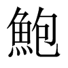 《唐韻》薄巧切《集韻》《韻會》《正韻》部巧切,?音抱。《說文》饐魚也。《玉篇》漬魚也。今謂裛魚。《釋名》鮑魚,鮑,腐也,埋藏奄使腐臭也。《急就篇註》鮑亦海魚,加之以鹽,而不乾者也。《周禮·天官·籩人》膴,鮑魚,鱐。《註》鮑者,於楅室中糗乾之,出於江淮也。《史記·貨殖傳》鮑千鈞。《註》鮑,膊魚也。謂破開中,頭尾不相離爲鮑,謂之膊關者也。《周語》鮑魚不登俎豆。《家語》與不善人居,如入鮑魚之肆,久而不聞其臭。