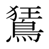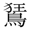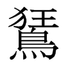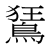 《廣韻》巨王切《集韻》渠王切,?音狂。《廣韻》鵟,鴟屬。《玉篇》鳥有冠。本作狂。《爾雅·釋鳥》狂,夢鳥。《郭註》狂鳥,五色有冠。