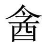 酓【酉集下】【酉部】 康熙筆画:11画,部外筆画:4画
